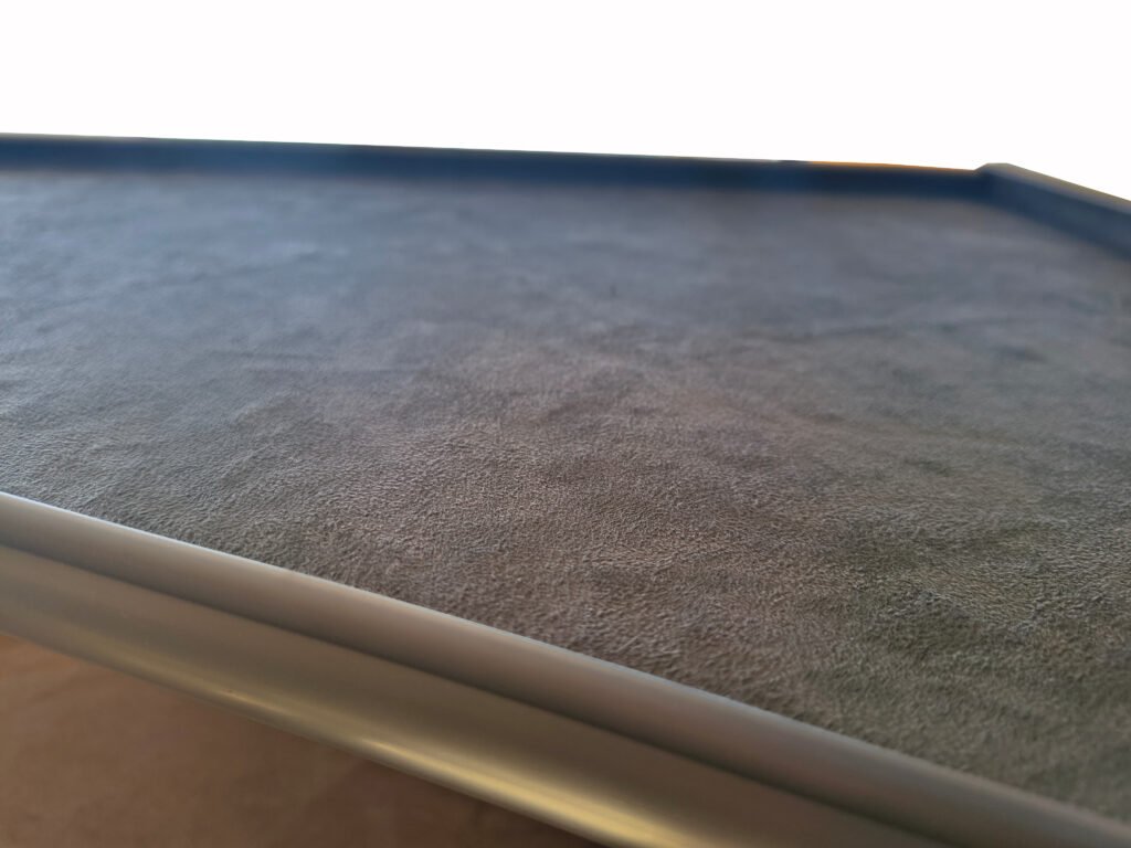 Tables covered with suede/alcantara fabric.